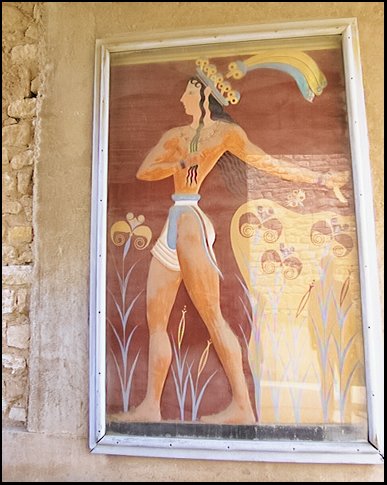 Magazine 4 with giant pithoi placed by the archaeologists for display. The compartments in the floor were the permanent locations of pithoi, or storage jars, such as these, which stored wet and dry consumables, such as wine, oil, and grain. When full, they were multi-ton and immoveable. They were sunken for easier access to the wide mouths, for support and to keep the stored items cool.