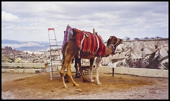 Camels for rent at Geome Now you see photos of these camels and the balloon festivals in this Cappadocia area, all over the internet. .
