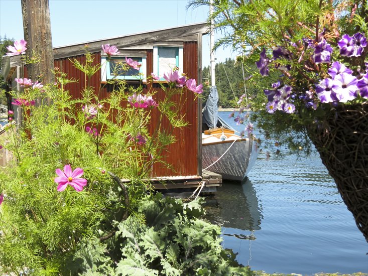 Flowers on the pier. I like the angles formed in the composition of this photo. The angles on the left contrast with the natural forms of the rocks, water and flowers on the right. Could be a diptych.