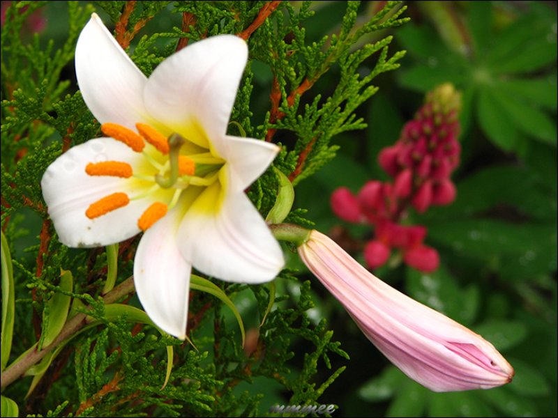 A colorful plant in the vegetable garden. And good to eat too.