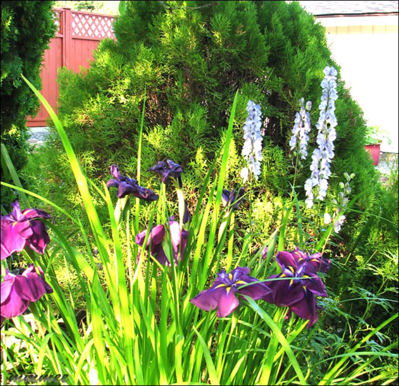 This water iris has multiplied and there are some in all of the water features. It is a gorgeous plant and the star of the water garden when in bloom.