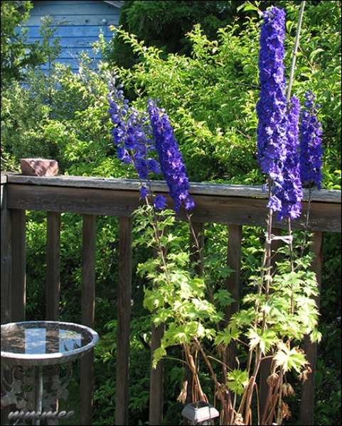 close up of the delphinium that might be the purple one. The royal blue one has a black bee. This one has a white or light colored inside.