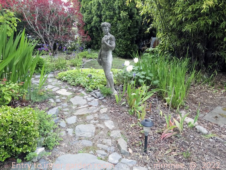 The bench in its niche in 2022. It is ageing and gaining some patina