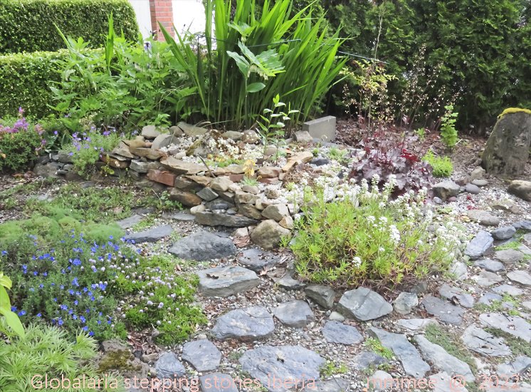 A close up of the pincushion flower (scaboisia) that grows in the Smoke bush garden room. The sedum and geum are further back in this little garden area; with the geum blooming in red and the sedum in yellow.