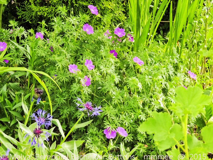 This is the 8 x 6 foot rectangle bed on the nefarious neighbours side of the boulevard garden room. The Plum tree in its new mulched bed is on the corner that we cannot see. The other plants are pussy toes, tall bearded irises, pinks as edging, verbena bodinaires, and others. There is a wild thorn tree that I have to constantly keep pruned back.