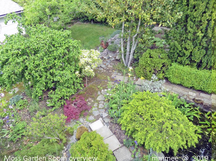 The stepping stones around the fig tree garden room and to the entry to the moss/water/shade garden room.