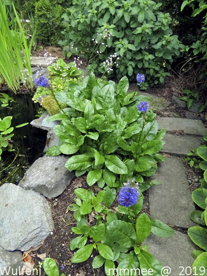 More of the sedum pond edging with the wulfeni filling in beside the trays, in 2022.
