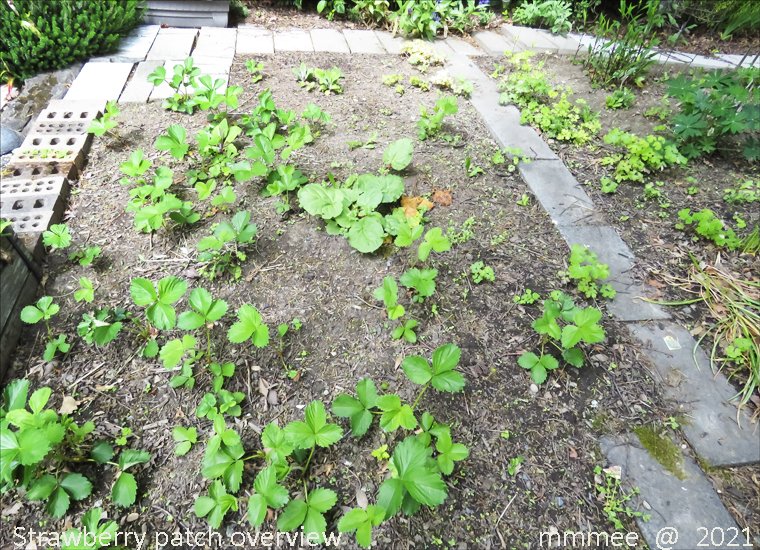 the other half of the back rock garden room in 2021. The strawberry jar has been planted with a creeping phlox. We are in a drought now in August 2023 and the phlox is totally brown. It may have to be replaced.