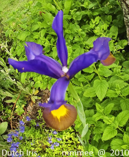 Siberian Iris 'Cearar's Brother' grows in the magnolia tree garden room between the black bamboo and the David, in 2016