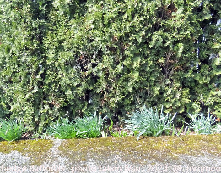 The perennial Geraniums grow in front of the cedar hedge. There is about 35 feet of these easy care, tough plants that end at the entry to the Woodland Garden Room. They are in bloom in April, 2016.