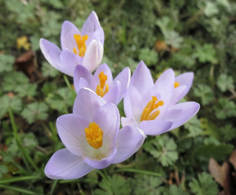 Close up of the dark purple crocuses with flowers closed, probably against the cold in 2010