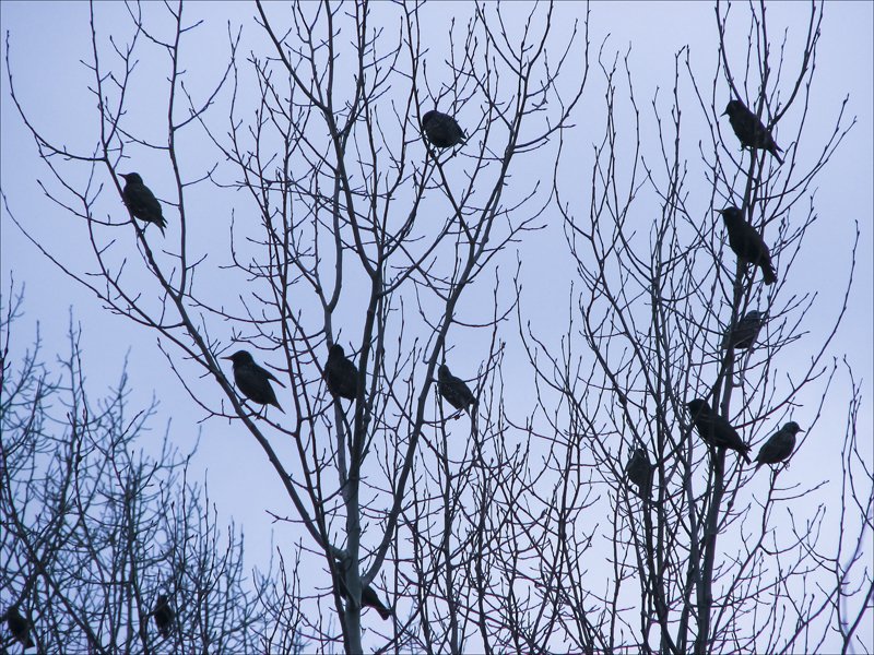 A flock of mourning doves. These birds seem to be increasing in numbers in recent years.