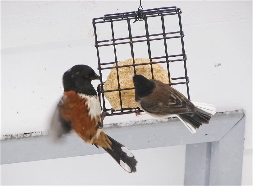More of the junco and rufous sided towhee at the feeder.