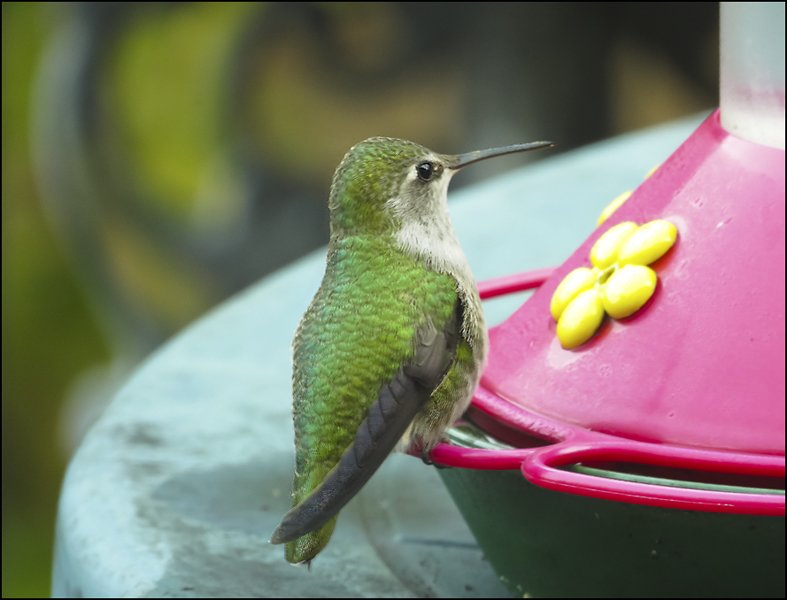 Another photo of the Anna's Hummingbird at the feeder.