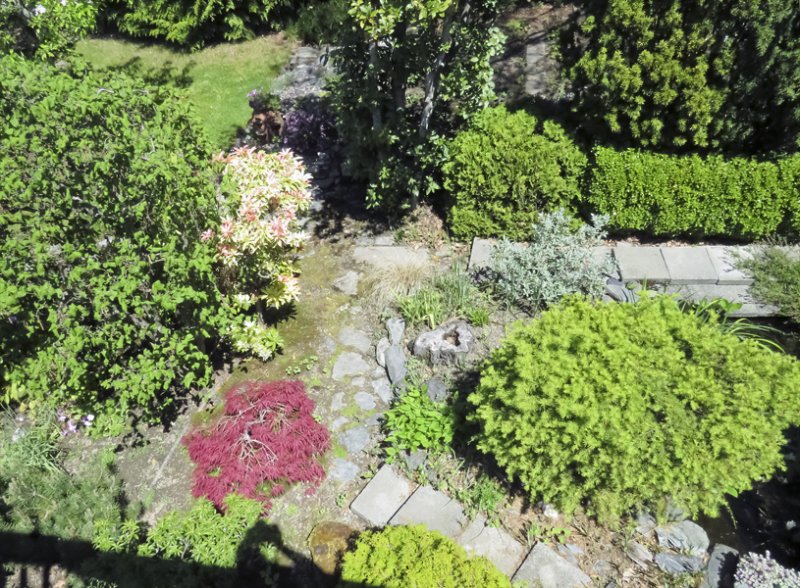 the drystream, the Japanese lantern, the cement pavers pathway that goes between the globe cedar and