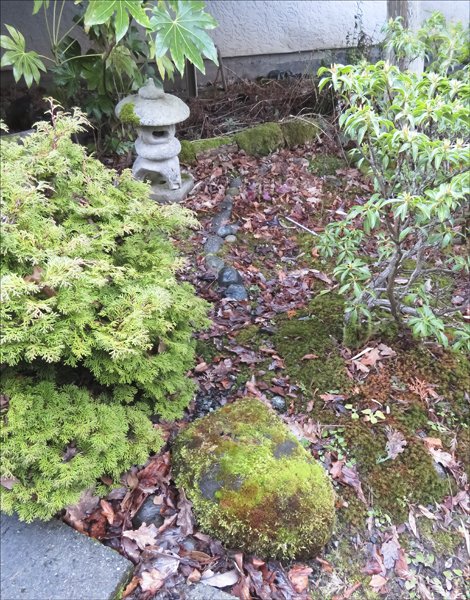 beginning and the lantern positioned where the drystream takes a curve along the deck edge.
